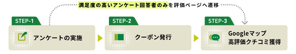 ※当ツールは割引、無料の商品やサービスと引き換えにクチコミ投稿を促すものではありません。ご来店経験のあるお客様にアンケートを実施し、クチコミ投稿のご依頼ができるツールとなります。