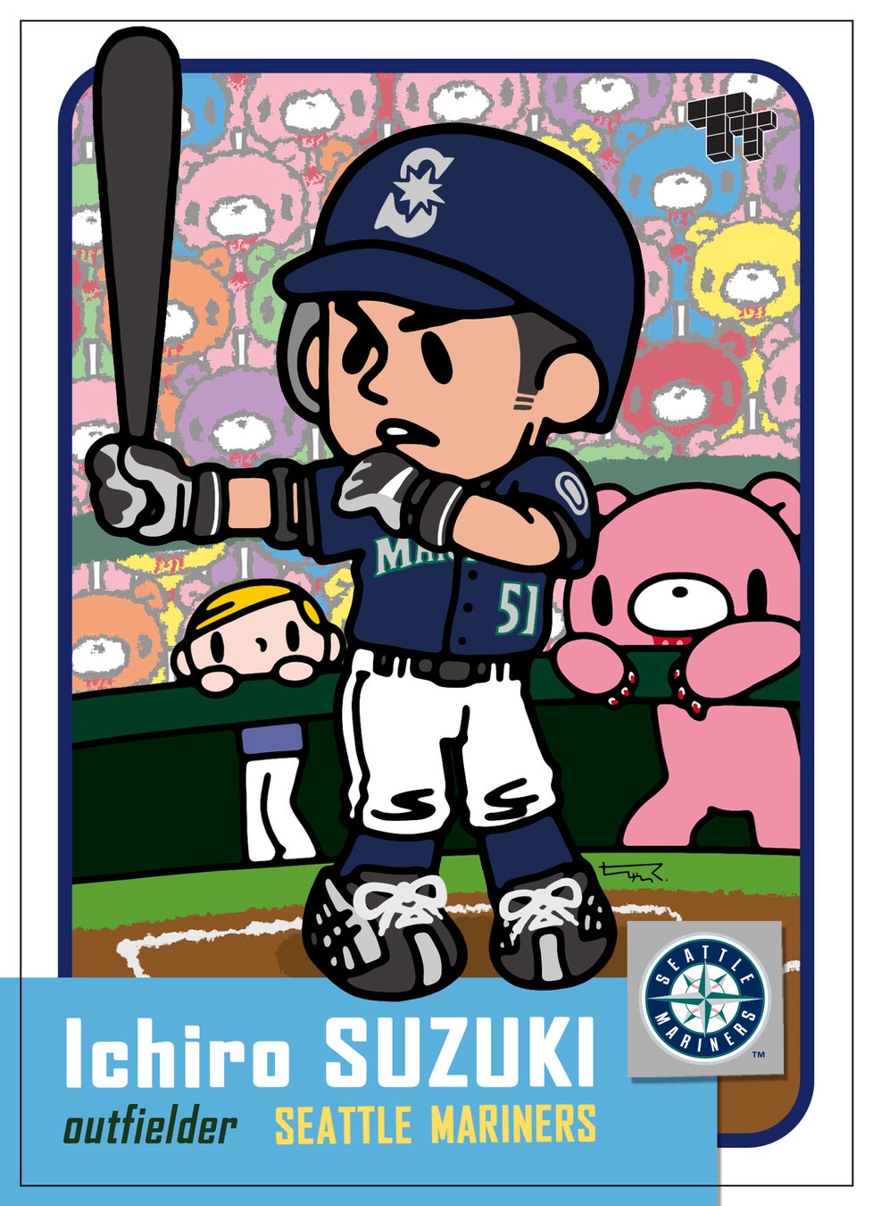 「いたずらぐまのグル~ミ~」で知られるキャラクター作家の森チャック氏は、本企画のアーティストとして日本人では唯一選出され、元メジャーリーグのイチロー選手と松井秀喜選手の人気日本人選手を描き起こしました。