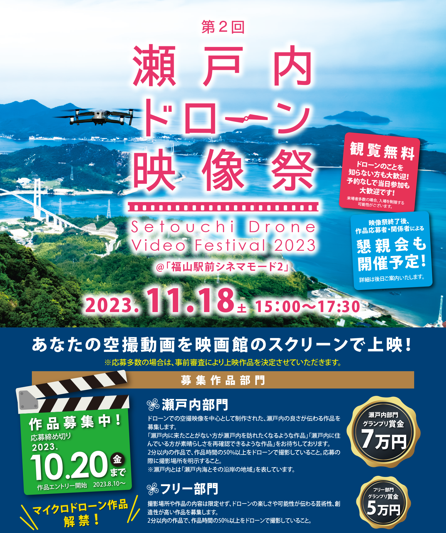 昨年好評いただいたドローン映像を映画館で上映する「瀬戸内ドローン映像祭」を今年も開催いたします。
