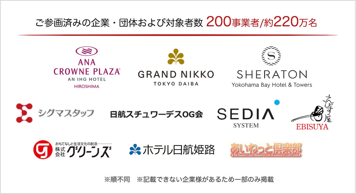 ※入会に際しては、従業員数100名以上(パート・アルバイト等を含む)の企業・団体であることを基本条件とし、弊社独自の審査を実施させていただきます。