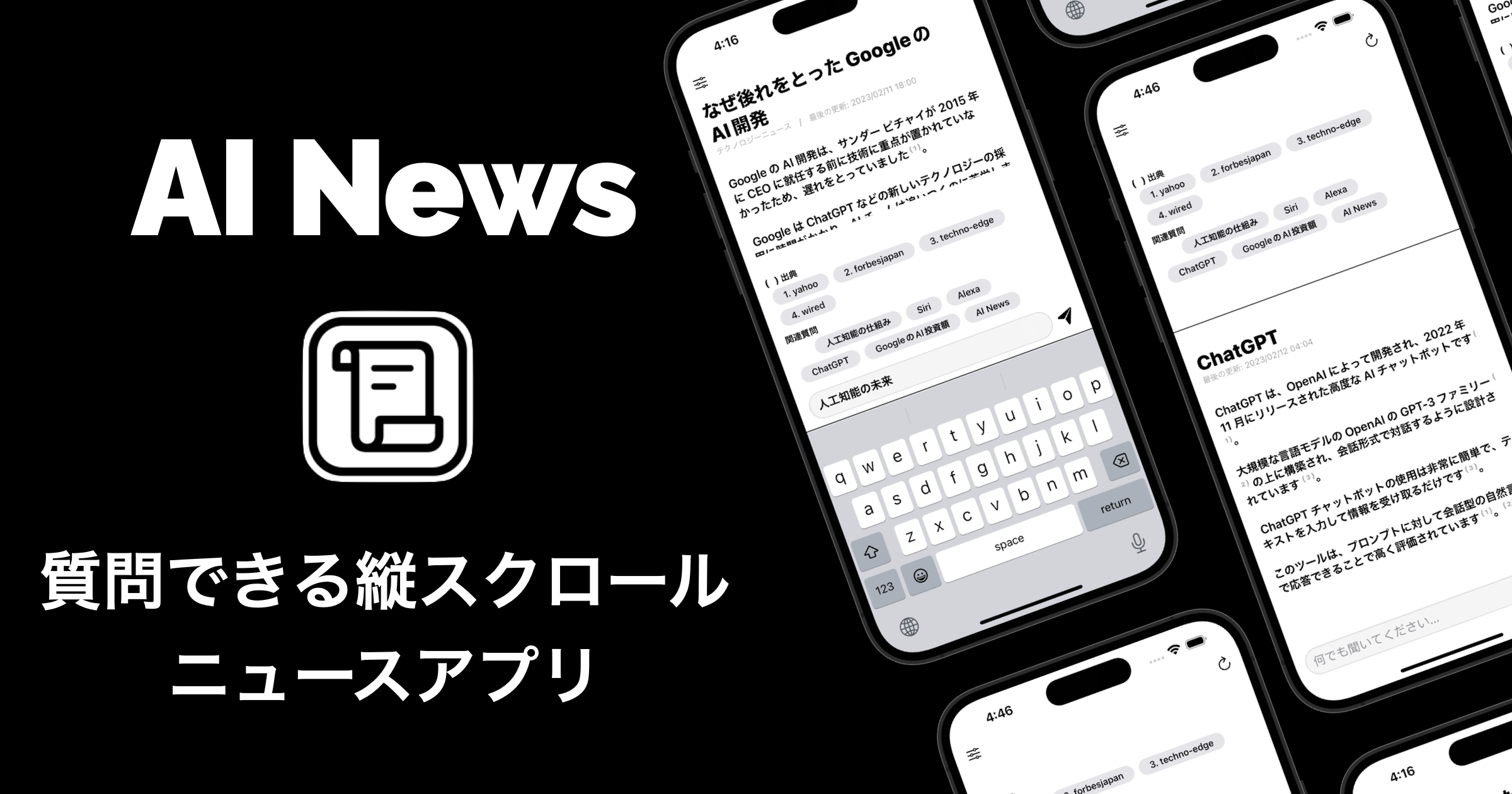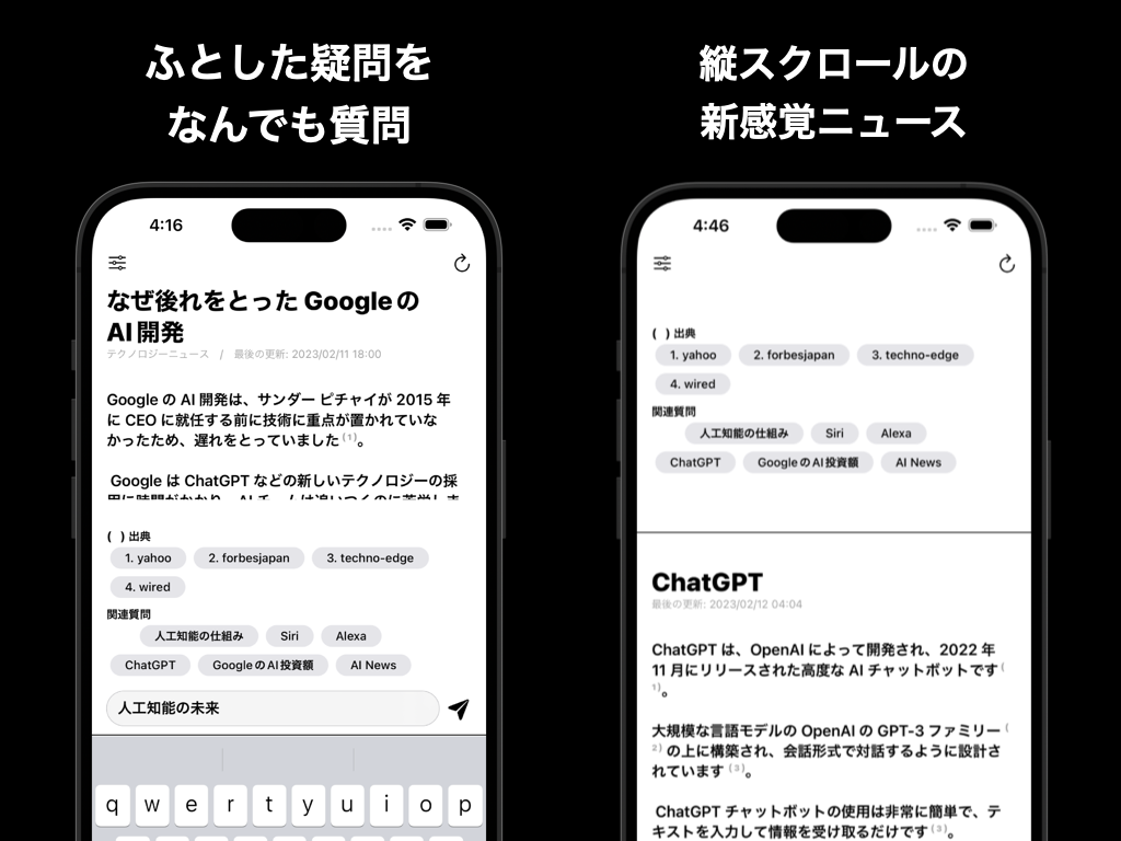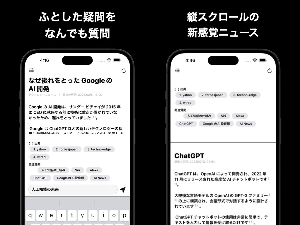 AIに質問できるニュースアプリ「AI News」をリリース。GPT搭載でTikTokスタイルの情報収集