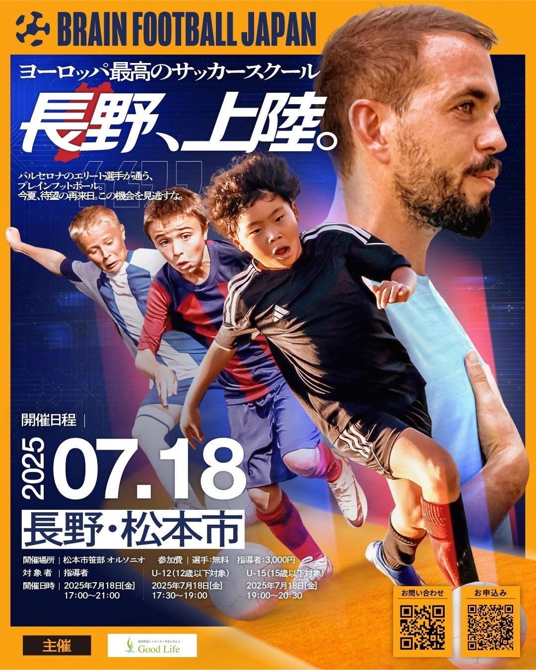 株式会社グッドライフは、2025年7月18日・19日の2日間、長野県松本市および白馬村において、次世代育成と地域活性化を目的としたサッカーイベント「ブレインフットボール in 長野」を開催いたします。