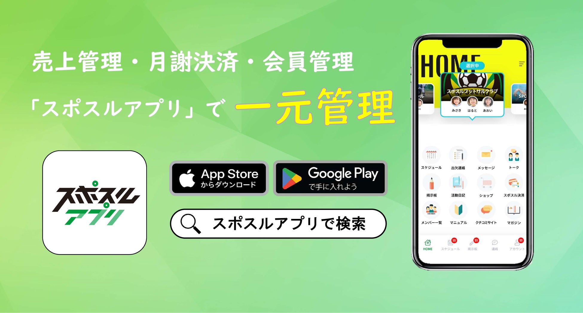 株式会社スポスル(本社:東京都豊島区、代表取締役:尾濱 徹)は、売上管理・月謝決済・会員管理・連絡網などをアプリで一元管理できる「スポスルアプリ」と、スポーツ団体補償「スポスル補償」のサービスをリリースしたことをお知らせいたします。