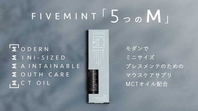 忙しくて歯磨きができない時、気分を入れ換えたい時、マスクをしている時も外した時も、息にも歯にも自信をもちたい。健康を願うすべての人の新習慣に寄り添うオーラルケアサプリ「FIVE MINT」をぜひお試しください。