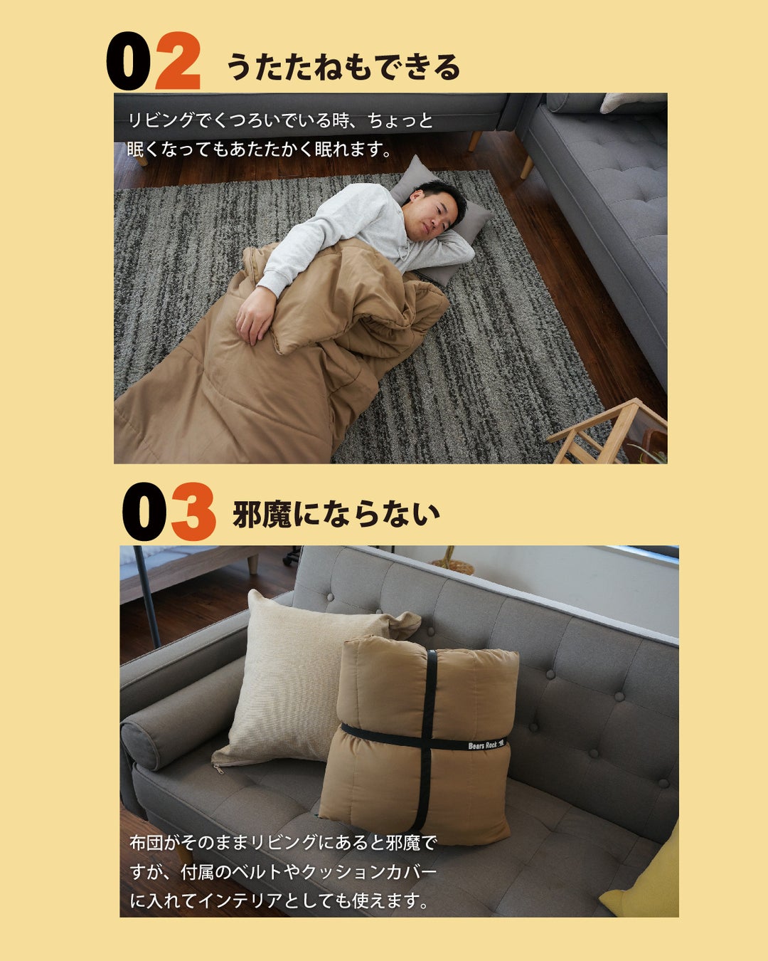 テレビを見ながら、うたた寝をしたり、リビングでお昼寝したりそんな経験ありませんか?寒い時期だとブランケットでは物足りないし、布団をわざわざ出すのは手間がかかりますよね。