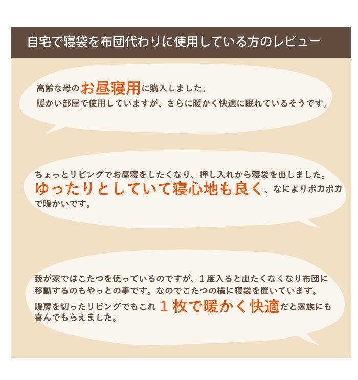 寝袋を購入したお客様のレビューを読んでいると、自宅で寝袋を布団代わりに使っていることを知りました。