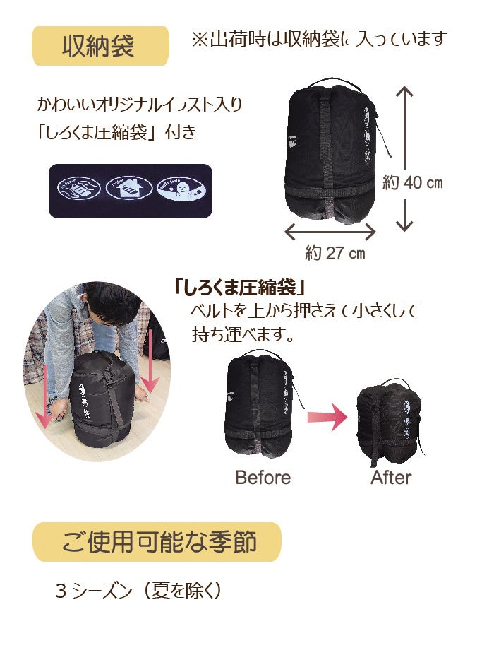 ご使用目安の季節:もっちりした生地で中に入るととても温かいので、寒い季節に効果を発揮します。