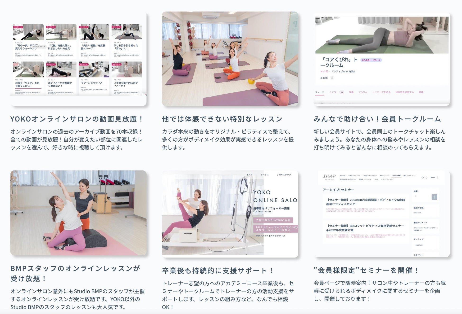 オンラインサロン意外にもStudio BMPのスタッフが主催するオンラインレッスンが受け放題です。YOKO以外のStudio BMPのスタッフのレッスンも大人気です。