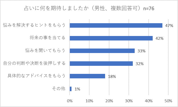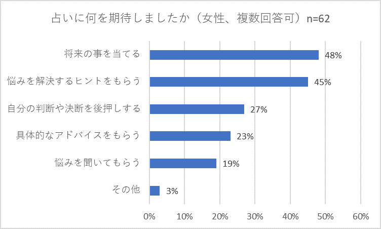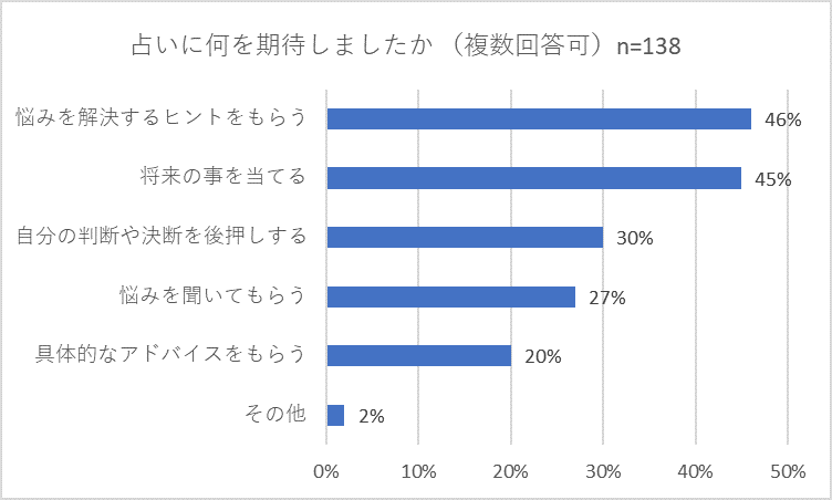 占いに期待したのは「悩みを解決するヒントをもらう」「将来の事を当てる」