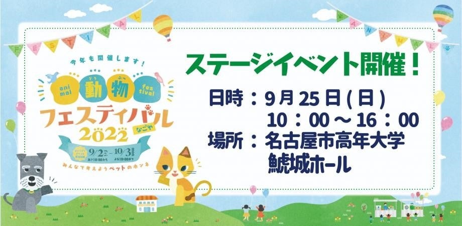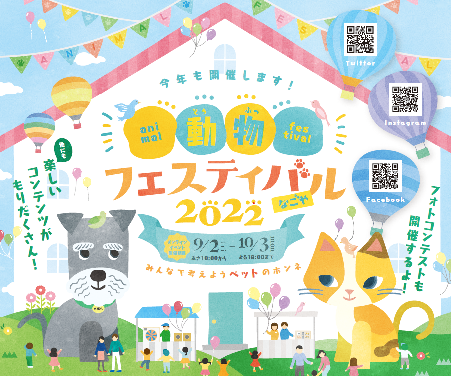 公益社団法人 名古屋市獣医師会と名古屋市が共催する『動物フェスティバル2022なごや』は、2022年9月2日(金)から10月3日(月)までの1ヶ月間開催いたします。