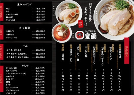 創業60年以上で、関西を中心にラーメン店・創作中華店などを運営し、サービスエリアや駅売店のお土産、量販スーパーでの販売を手掛けている株式会社北海(本社:兵庫県神戸市灘区、代表取締役社長:千田昌彦)は、神戸南京町で長年営業している「皇蘭」をリニューアルし、メニューも一新した店舗を11月26日(土)にオープンします。