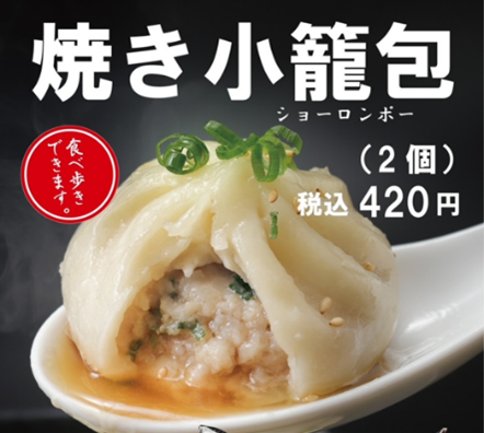 ・焼き小籠包 (420円/2個)当店の名物で、一口かめば肉汁があふれ出ます。