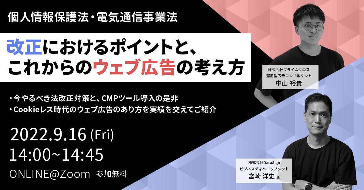 【ウェビナー開催のご案内】2022.9.16 個人情報保護法・電気通信事業法の改正におけるポイントとこれからのウェブ広告の考え方
