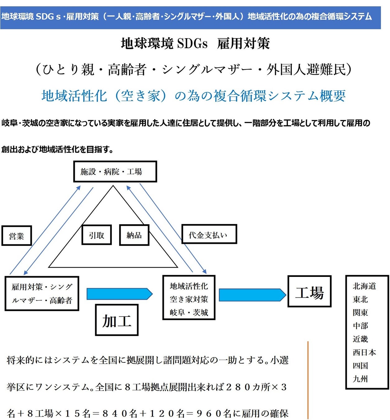 地球環境SDGs・雇用対策(一人親・高齢者・シングルマザー・外国人)地域活性化の為の複合循環システム
