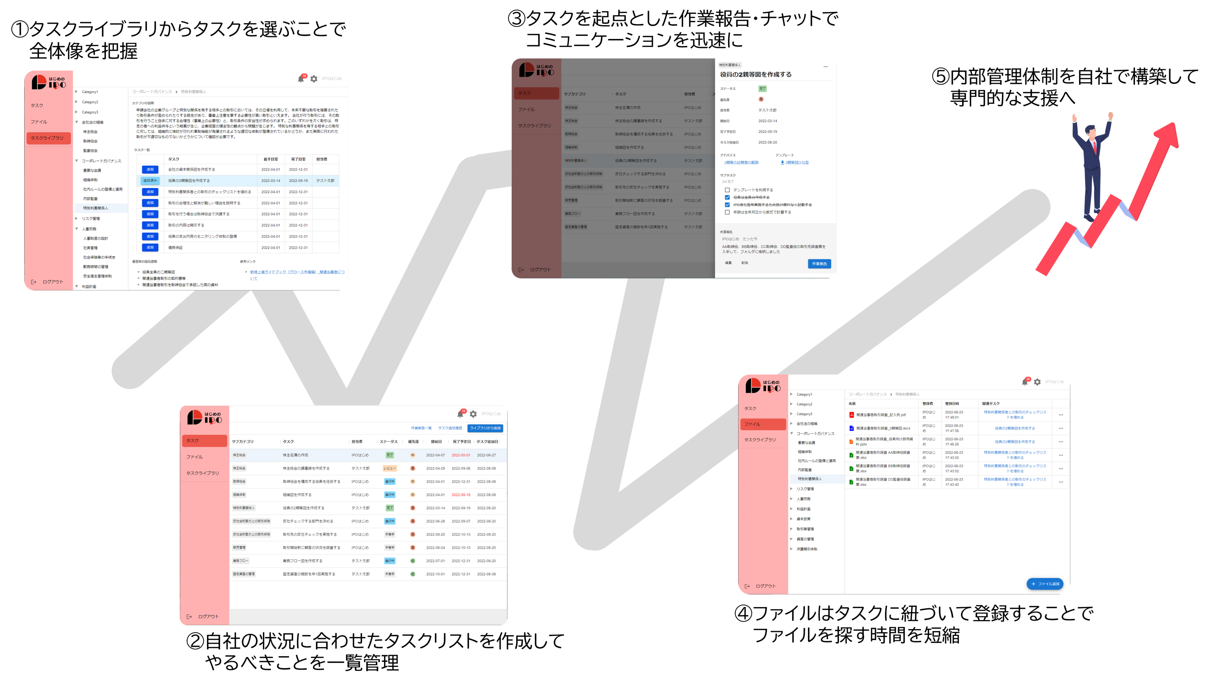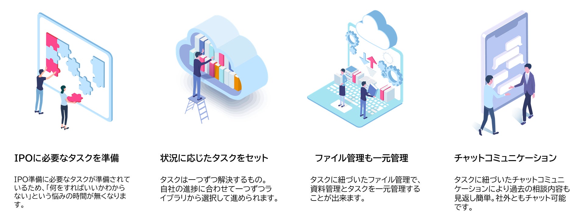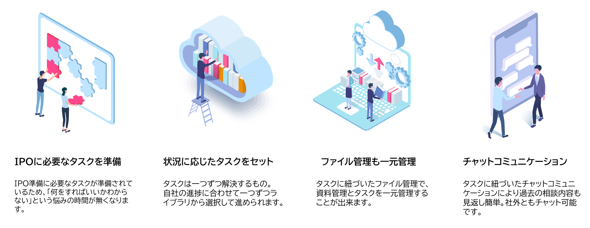 ~IPO準備に必要なタスクが準備されているため、「何をすればいいかわからない」という悩みの時間が無くなります。