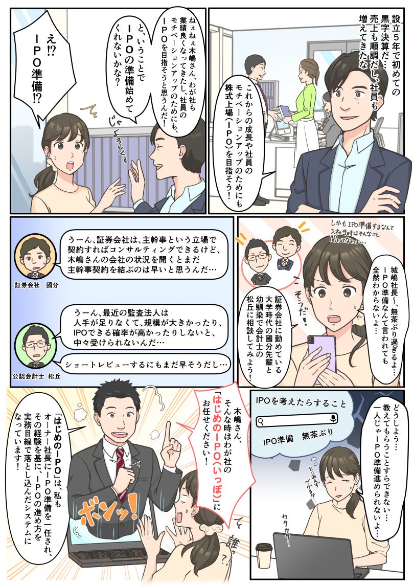また、IPOするには監査法人による監査及び証券会社による公開引受支援を受ける必要があります。