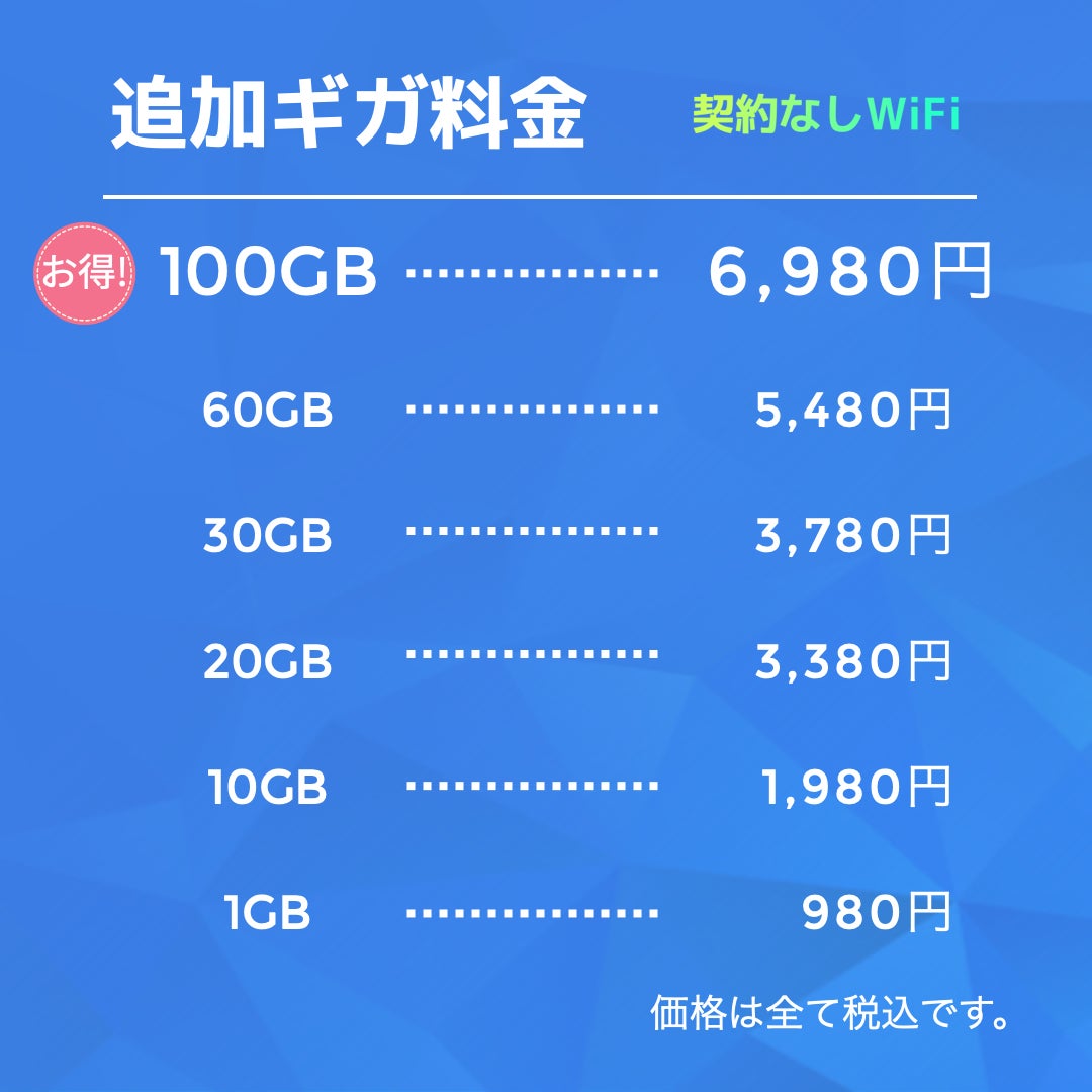 契約なしWiFi・国内専用GBチャージ|6,980円(税込)