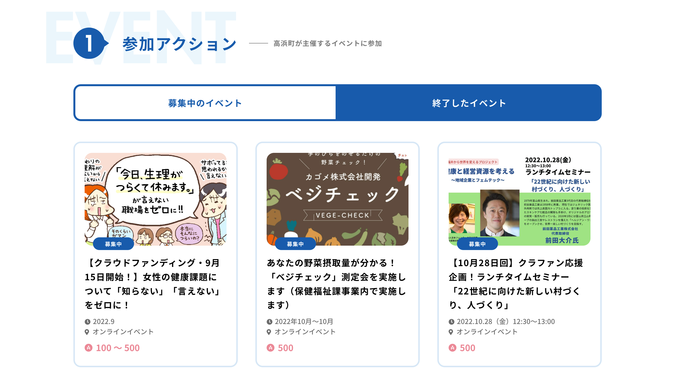 高浜町はまち全体で健康づくり・まちづくりの促進やDX化の推進など、「ソーシャルグッド」な取り組みを行っています。まちの取り組み(セミナーに参加した、健康習慣の改良を意識したなど)を定量的に可視化できる特設ページをこのたび開設いたしました。