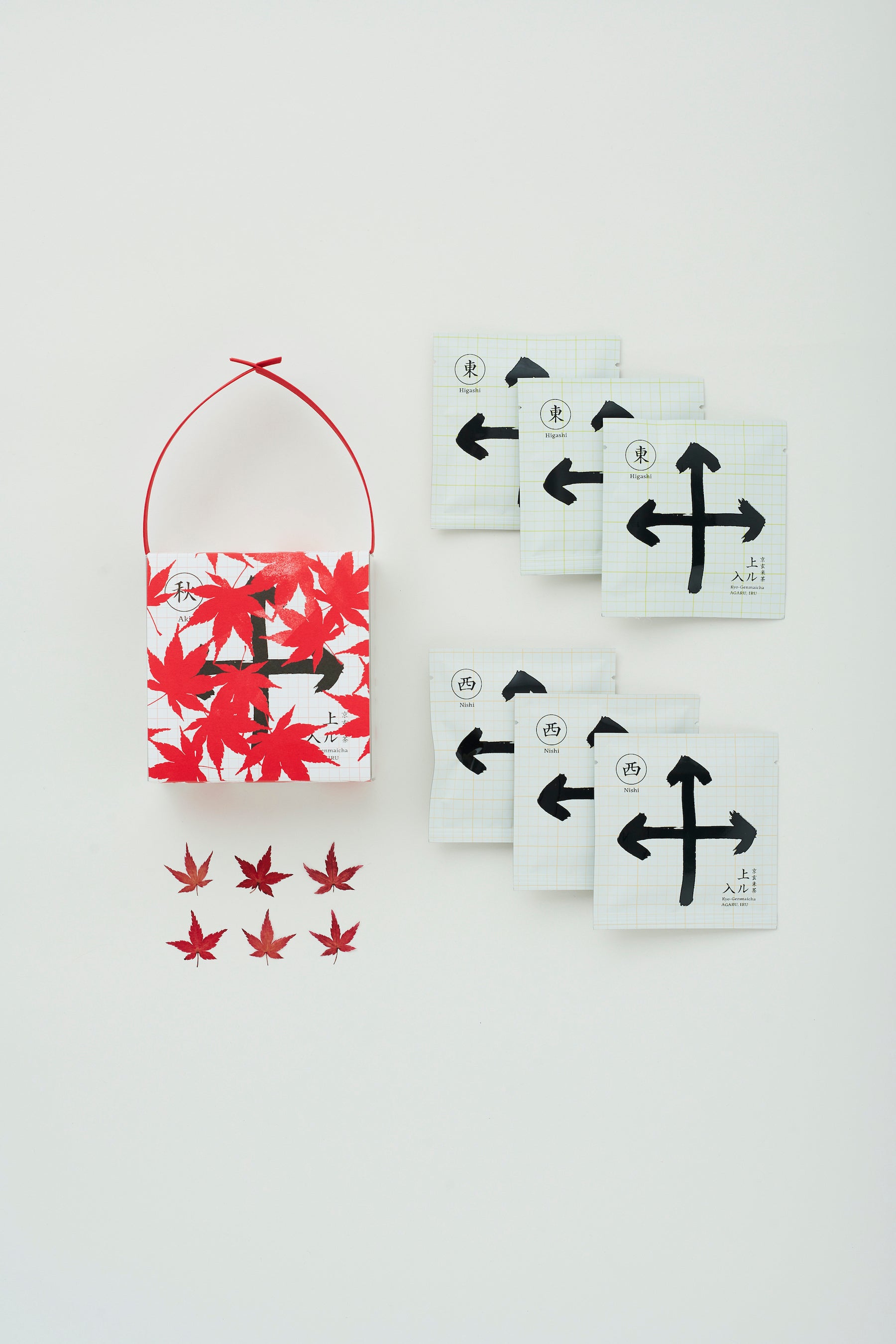 内容: 上ル入ル【東】 3袋/上ル入ル【西】 3袋/食用ドライもみじ葉6枚
