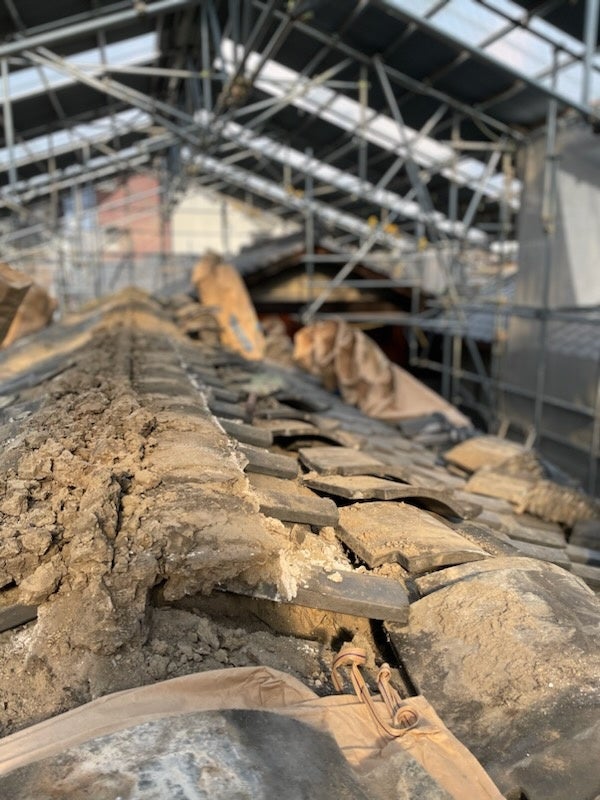 コロナの影響で、祇園祭の巡行は2年間中止となり、当保存会の収益の柱であった祇園祭の期間の公開収入は90%以上の減収となってしまいました。巡行は昨年3年ぶりに縮小実施され、今年4年ぶりに従来通りに盛大に行われましたが、当財団の文化財を守る費用の確保は大変厳しい状況の中、迫りくる老朽化をくいとめるため、わたしたちは「待った無し」で令和4年度から3カ年度をかけて、大屋根葺き替えと修復工事を進めることを決意しました。