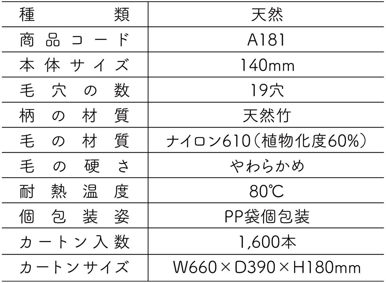 本商品は、従来の大人用丸型歯ブラシM・L/平型、子供用丸型歯ブラシSサイズに加え、従来よりホテル・旅館事業者より要望の多かった「乳幼児向け」竹歯ブラシとして、新たなラインナップ展開となる。
