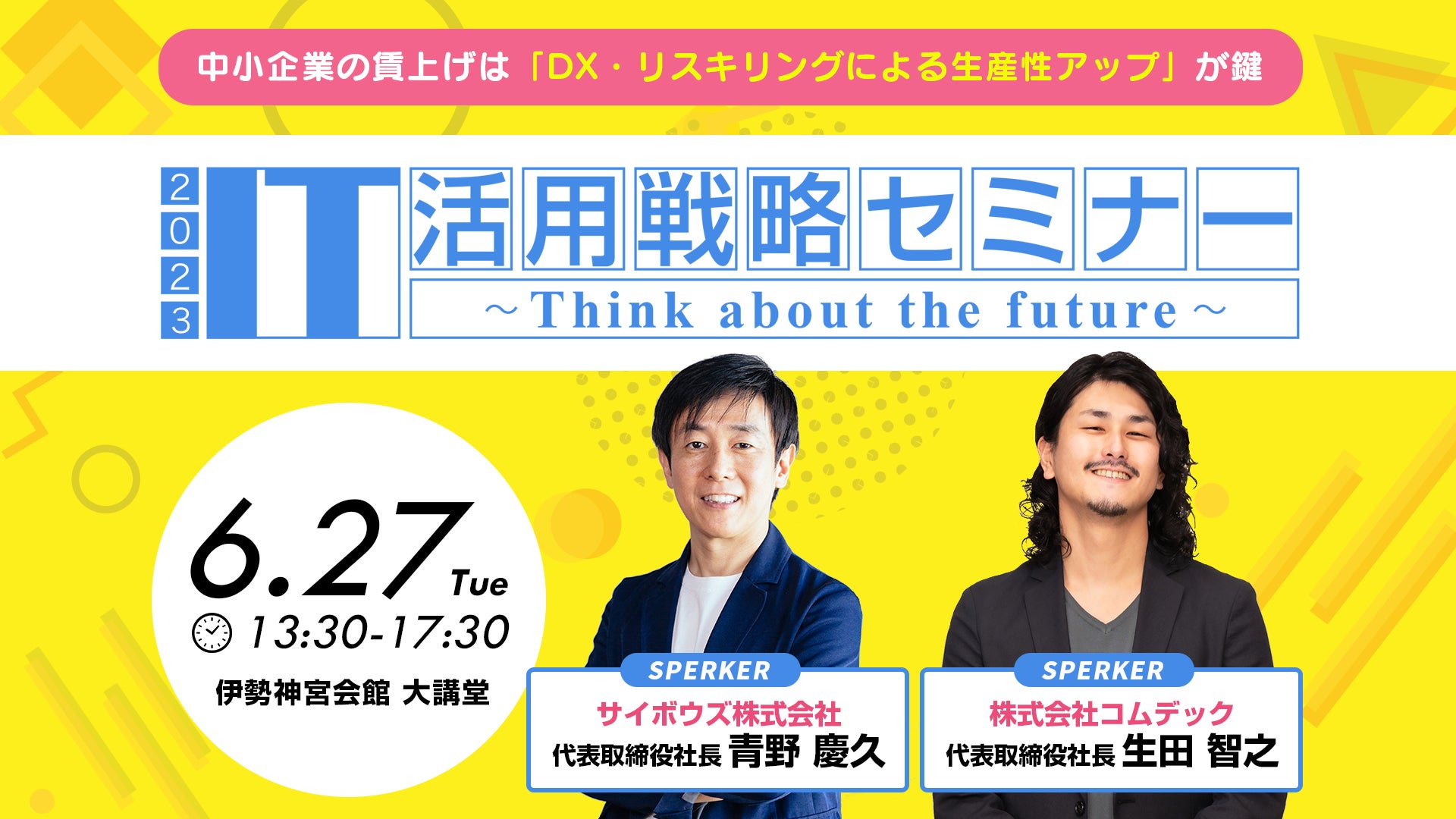 6月27日(火)、サイボウズ青野社長も登壇!DXで中小企業の体質改善を推進する株式会社コムデックが伊勢市で大規模セミナーを開催!『ノーコードを活用したリスキリングで賃上げをどう実現するか』