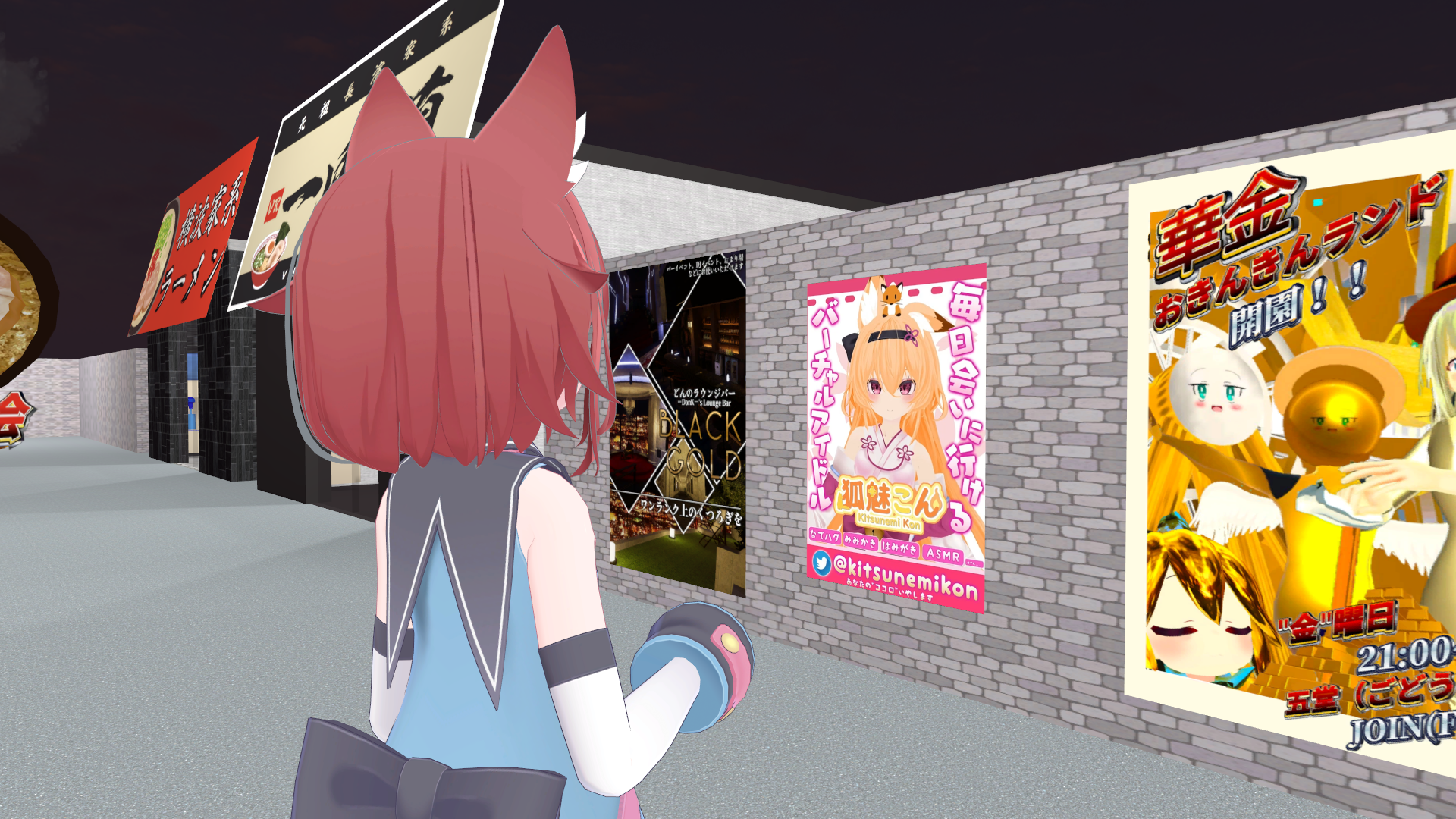 当初の広告掲載は2022年3月に商用許諾を受けたVRSNSプラットフォーム、VRChatにて行う。
