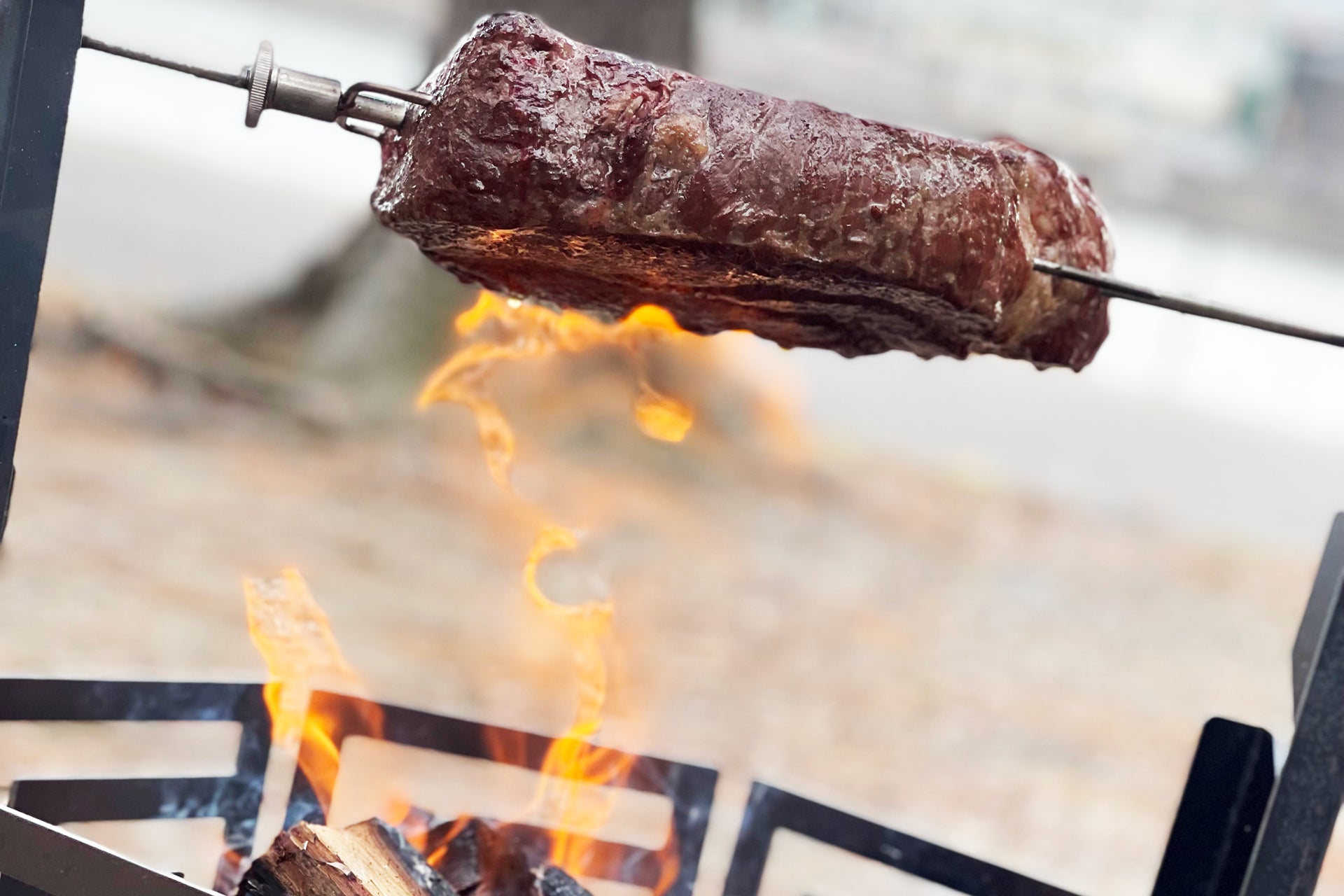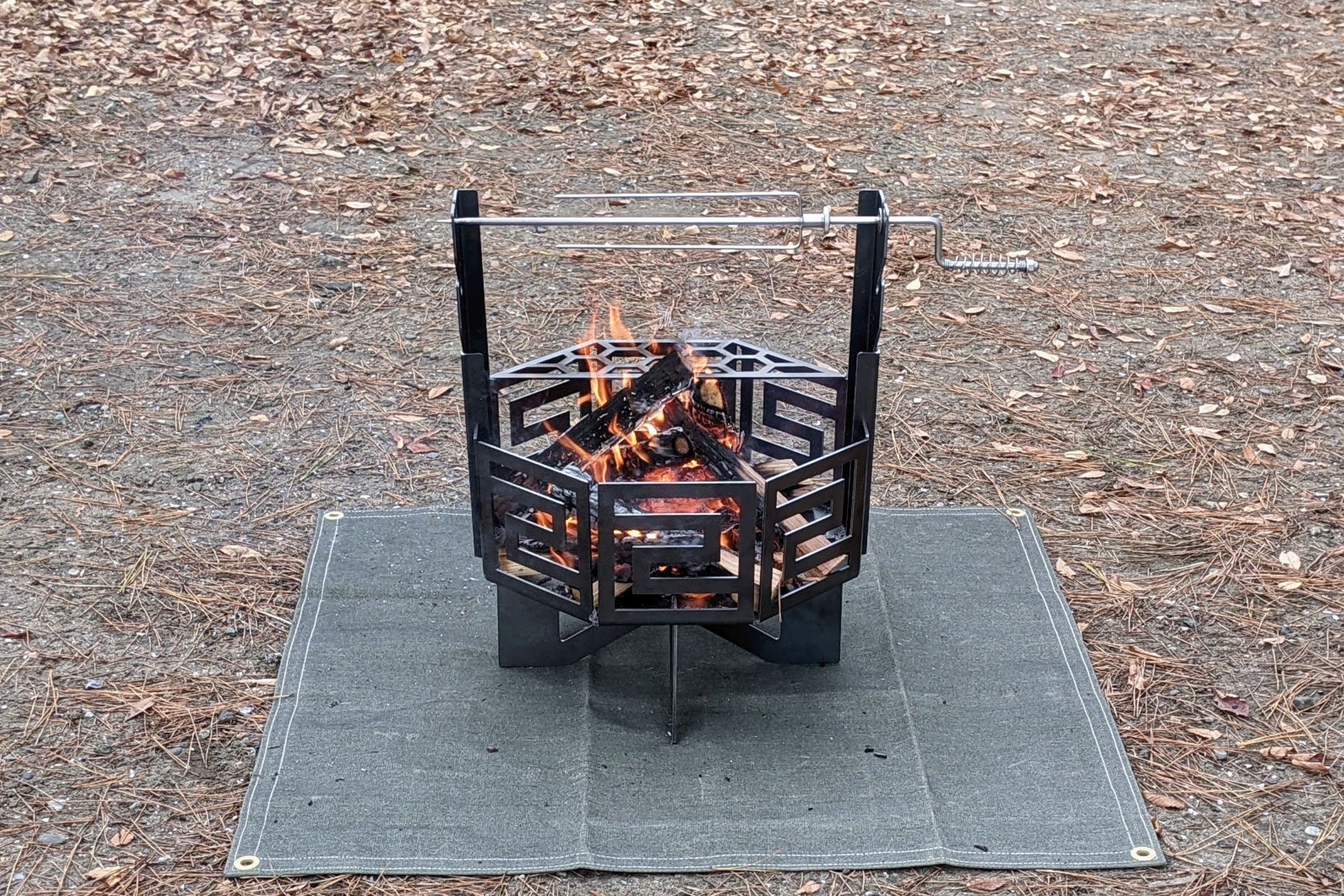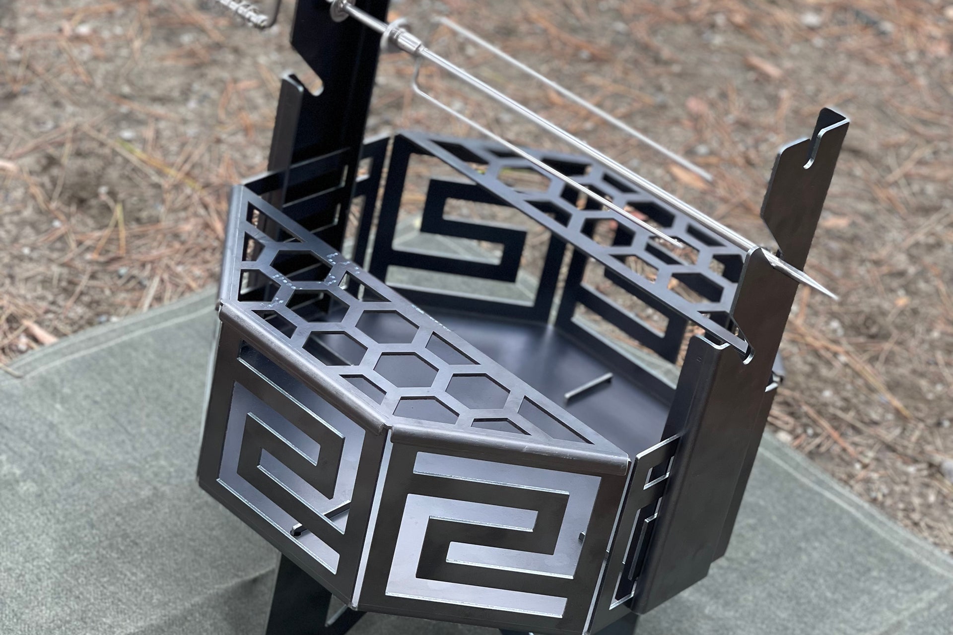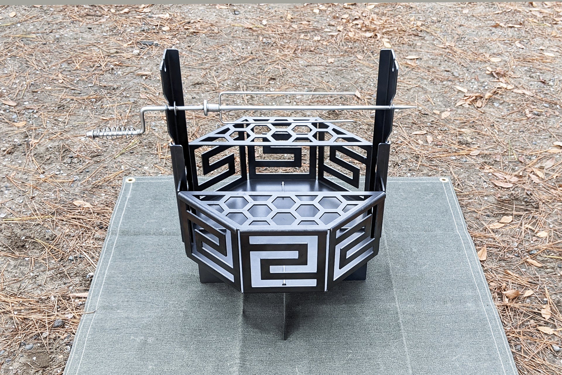 お肉をグルグル回して焼ける焚火台『インフィニティ肉焼きセット』が登場。CAMPFIREにて12月20日から先行発売開始