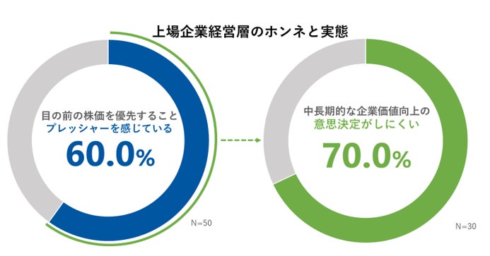 上場企業経営層の60.0%が、「会社経営の意思決定をする上で、長期的に企業価値を高めることよりも、目の前の株価を優先することへの、株主からのプレッシャーを感じたことがある」と回答しており、株主からの「投機」的な期待の圧力に苦慮していることが明らかになりました。