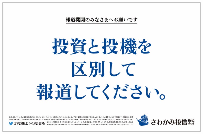 『#投機よりも投資を プロジェクト』 (URL:https://www.sawakami.co.jp/lp/investment/ )