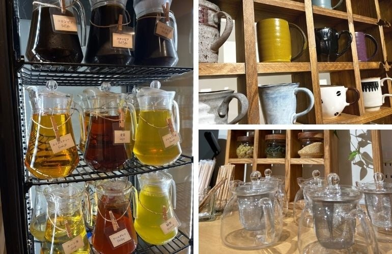 スタッフがこだわって選んだスペシャルティコーヒー、健康茶、ハーブ、定番まで厳選した茶葉、スープ、スナックが60種類以上。ご自由に召し上がれます。