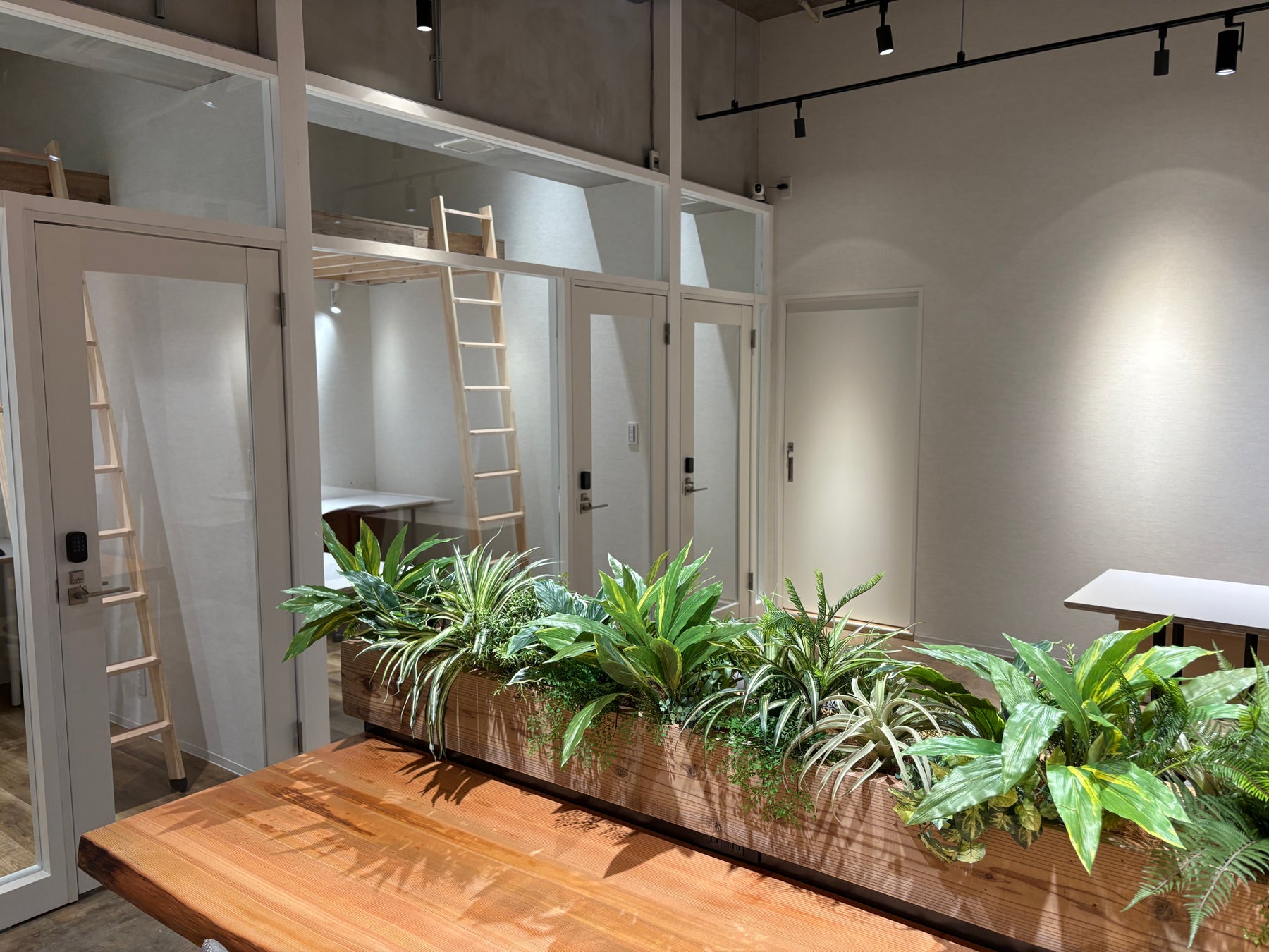 集中できるブース席、仲間と使えるL字型デスク、個室、ロフト付きのシェアオフィスなど、