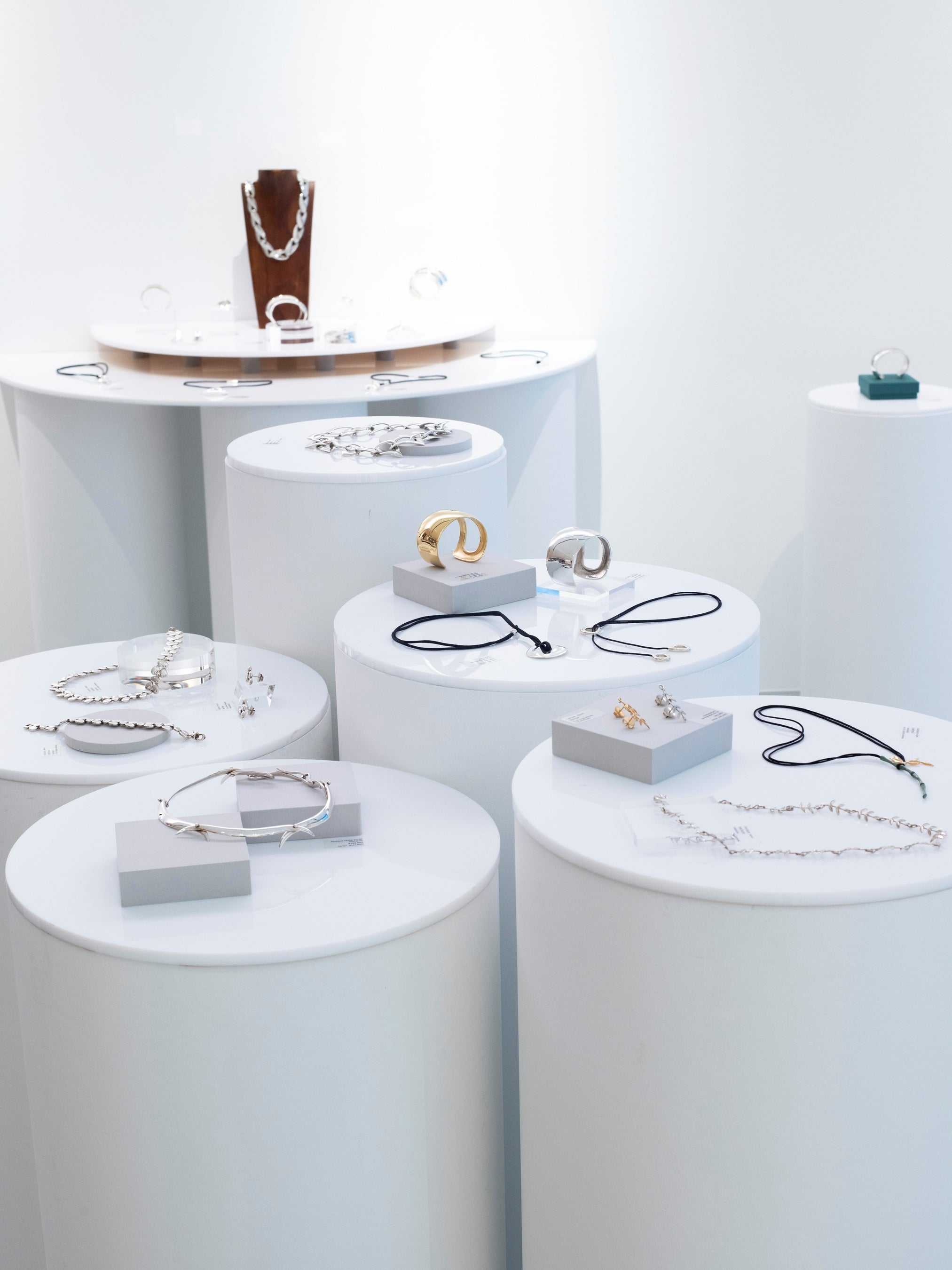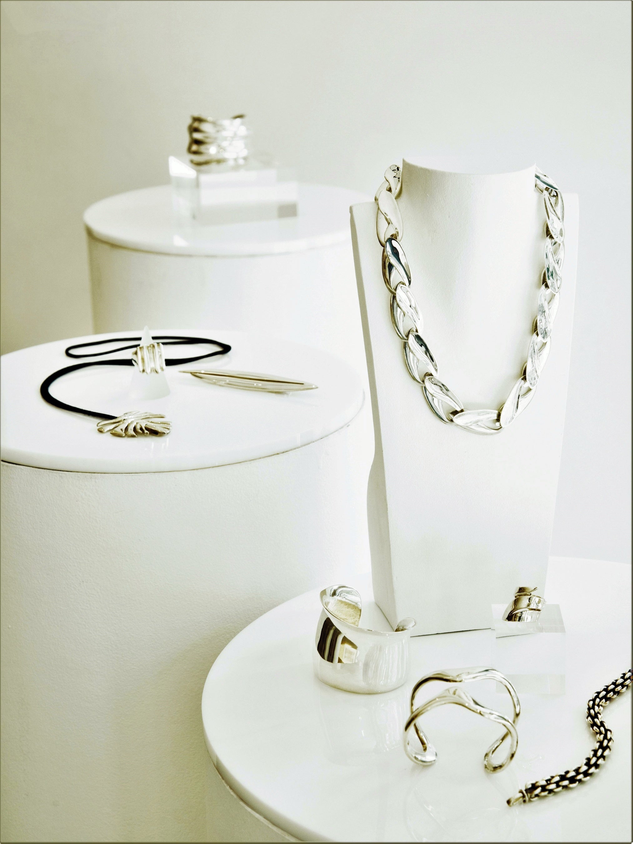 その他にも代表的ジュエリーやオブジェ作品などを展示販売。シンプルながら洗練されたプレゼンテーションは、デザイナー Joaquín Berao のクリエイティビティを堪能できる空間を作り上げています。