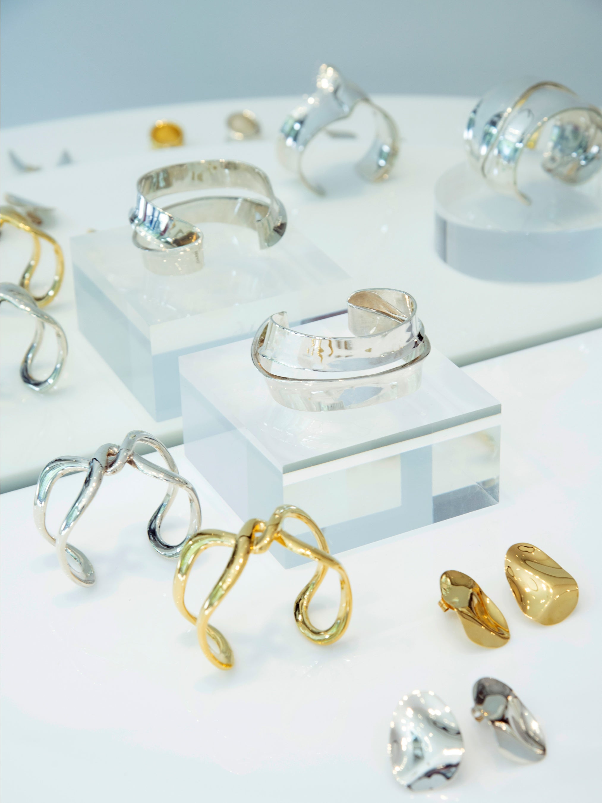 バングル 4型(82,500円〜)、ピアス 7型(49,500円〜)、ネックレス 6型(60,500円〜、リング 6型(48,400円〜)の全 23アイテムとなっています。