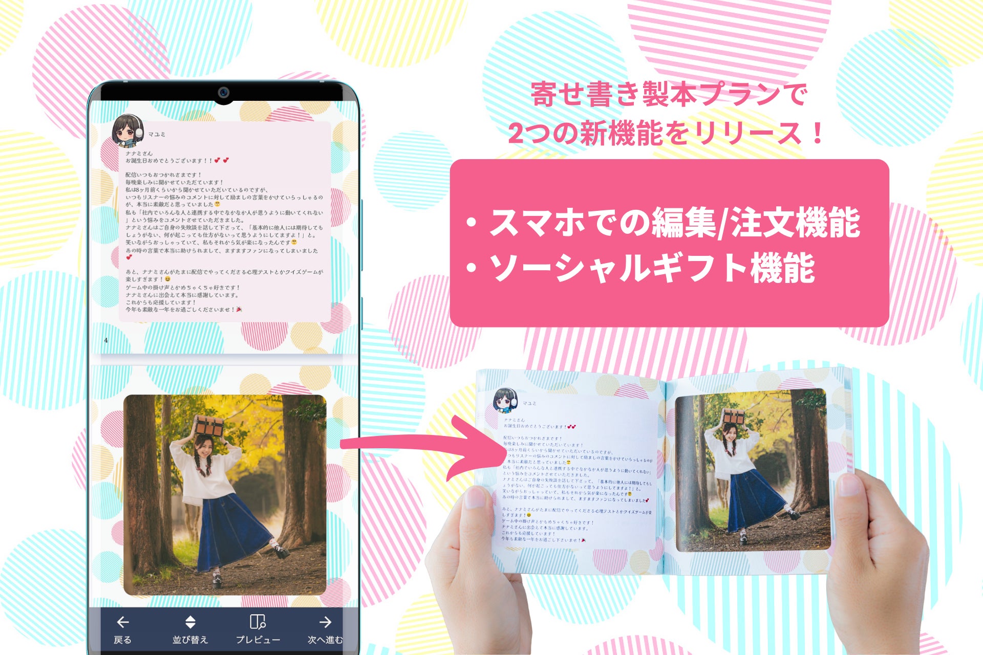 元々、寄せ書きを投稿する画面などの機能は既にスマートフォン上で行えていましたが、製本プラン全ての工程がスマートフォンで完成できるようになります。