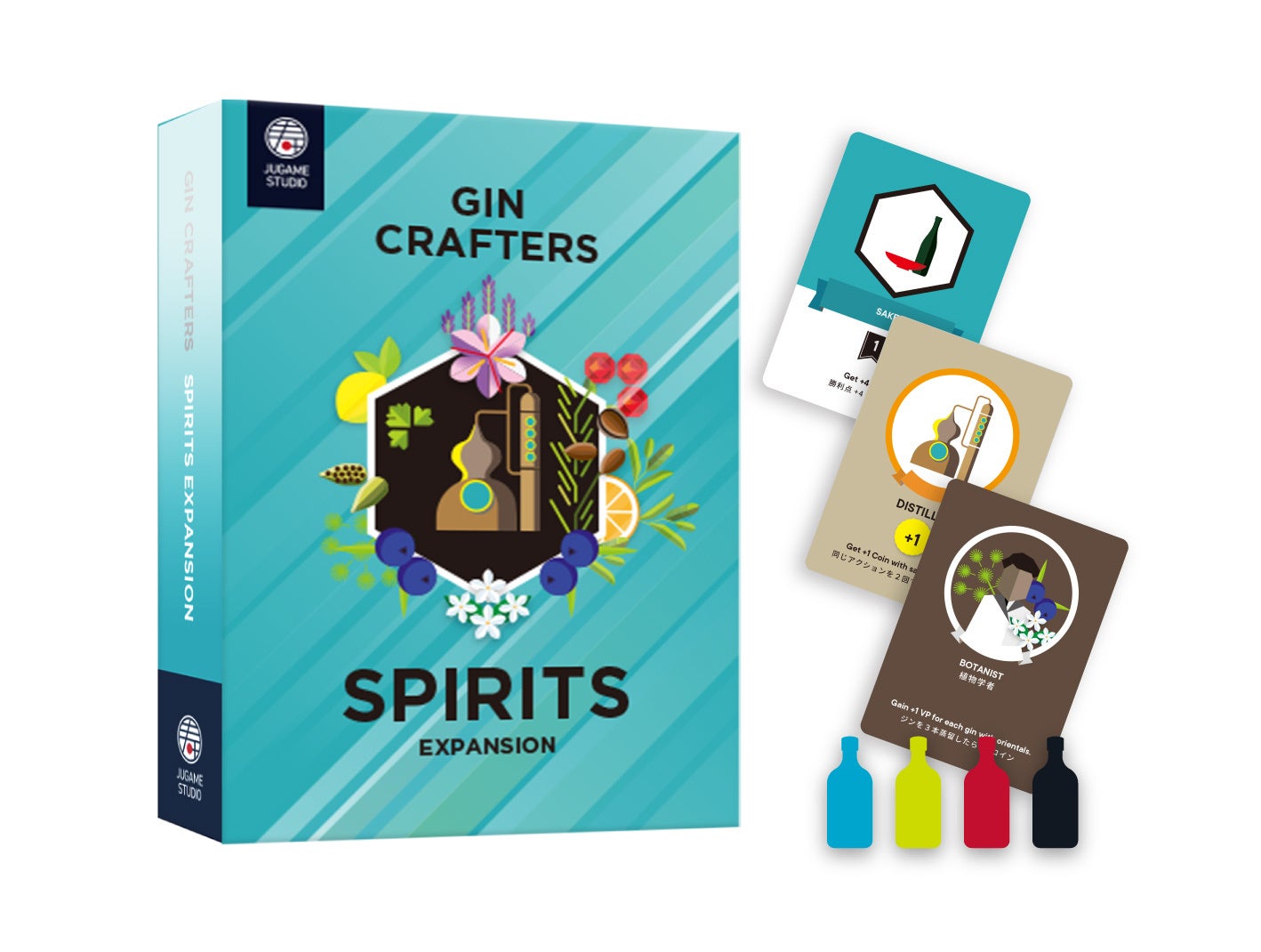 他にも、本プロジェクトでは『ジンクラフターズ』をさらに楽しめるよう、拡張パッケージ『SPIRITS EXPANSION』をご用意しました。ジンの蒸留機、ベーススピリッツ、ジンづくりを助けてくれるサポーターという3つの要素が加わります。
