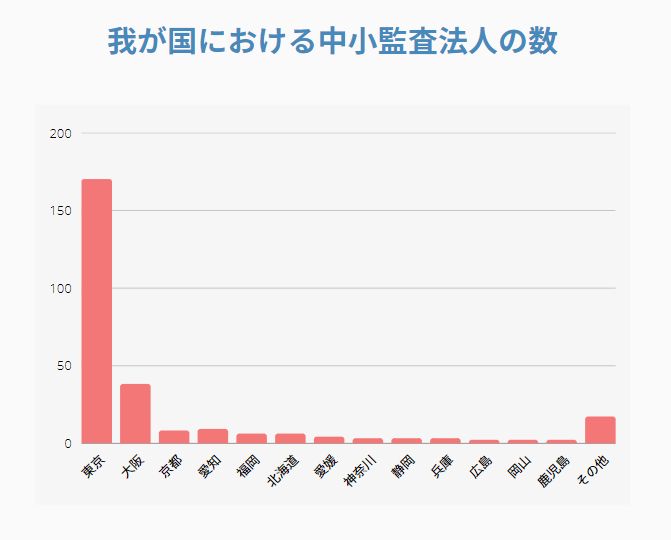 その結果、全中小監査法人の62%以上が東京都内に本店を構えており、次いで大阪を本店とする中小監査法人は約14%であることが分かりました。