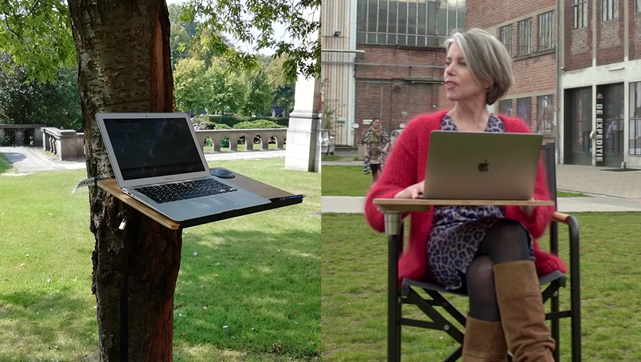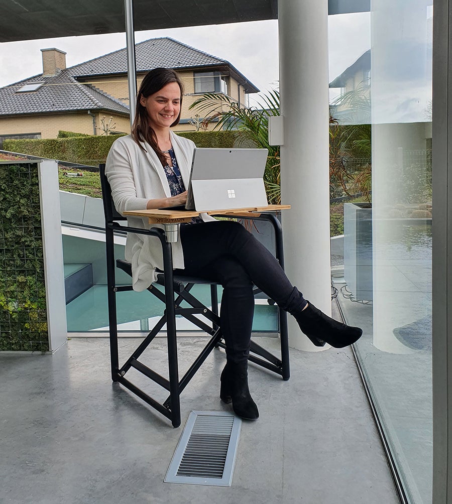 いつでもどこでもこれ1つパッと広げりゃ人が集まる!そして私のオフィスは屋根の上!デスクの付いた折りたたみ椅子【chAIR】の販売開始