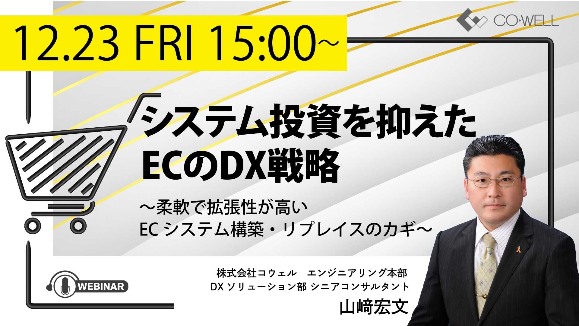 グローバルITソリューション企業である株式会社コウェル(本社:東京都品川区)は、12月23日に『システム投資を抑えたECのDX戦略 ~柔軟で拡張性が高いECシステム構築・リプレイスのカギ〜』というテーマのウェビナーを開催します。
