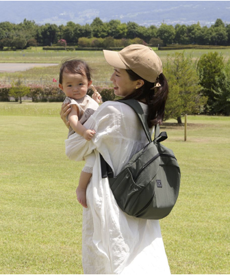 現役ママが徹底的に使いごこちにこだわって開発。350gの軽量を保ちつつ、収納力は抜群。5色のくすみ色展開で、丸洗いもできます。サコッシュとの2個持ちもおすすめ。