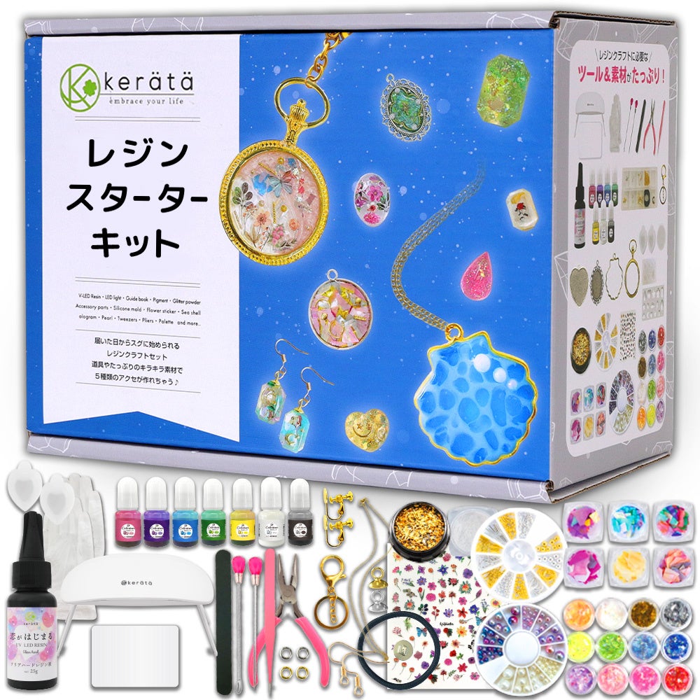 長年ご愛顧いただいているスターターキットから、ミニセットが新発売。仕上がりが自慢の「kerätä」オリジナルレジン液「恋がはじまる」と動画解説付きガイドブックを同梱。ボックスはスタジオとしても使用可能でクリスマスギフトとしてもぴったりです。