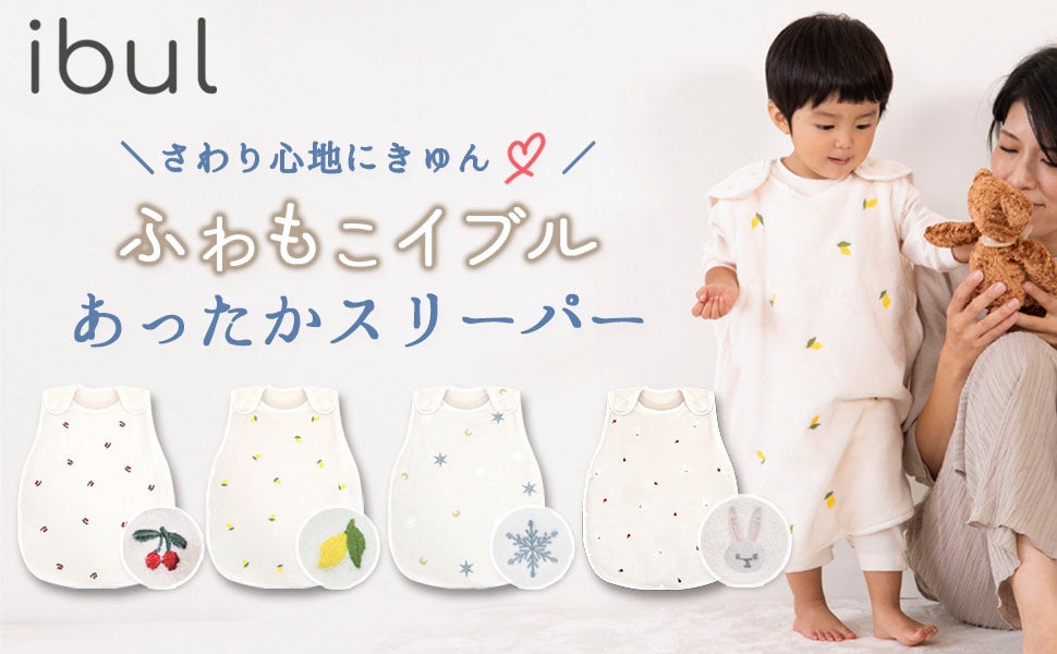 2022年秋冬のラインナップは、「冬のぬくぬく親子時間に。」をテーマに、昨年完売したふわもこイブルのスリーパーをより進化させた新製品や、親子の密着をより感じられる新デザインのスリング、また100%ダウンにこだわったダウンカバーなど、秋冬にぴったりなアイテムを中心に展開いたします。