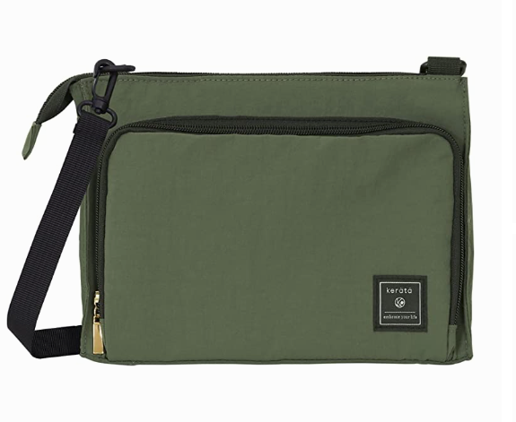超軽量200gを実現したママのためのサコッシュ。マチの広さが調整可能で母子手帳入れやおむつポーチとしても使用でき、丸洗いも可能。