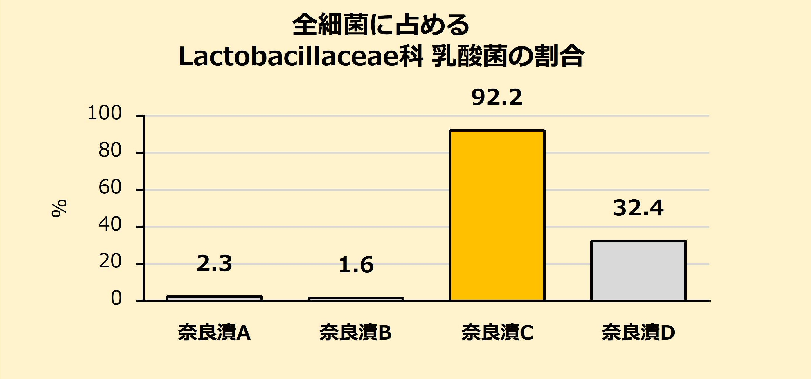 「今回の研究データによって、弊店の奈良漬は他社様の奈良漬と比較して、乳酸菌の量が圧倒的に多い事が判明しました。