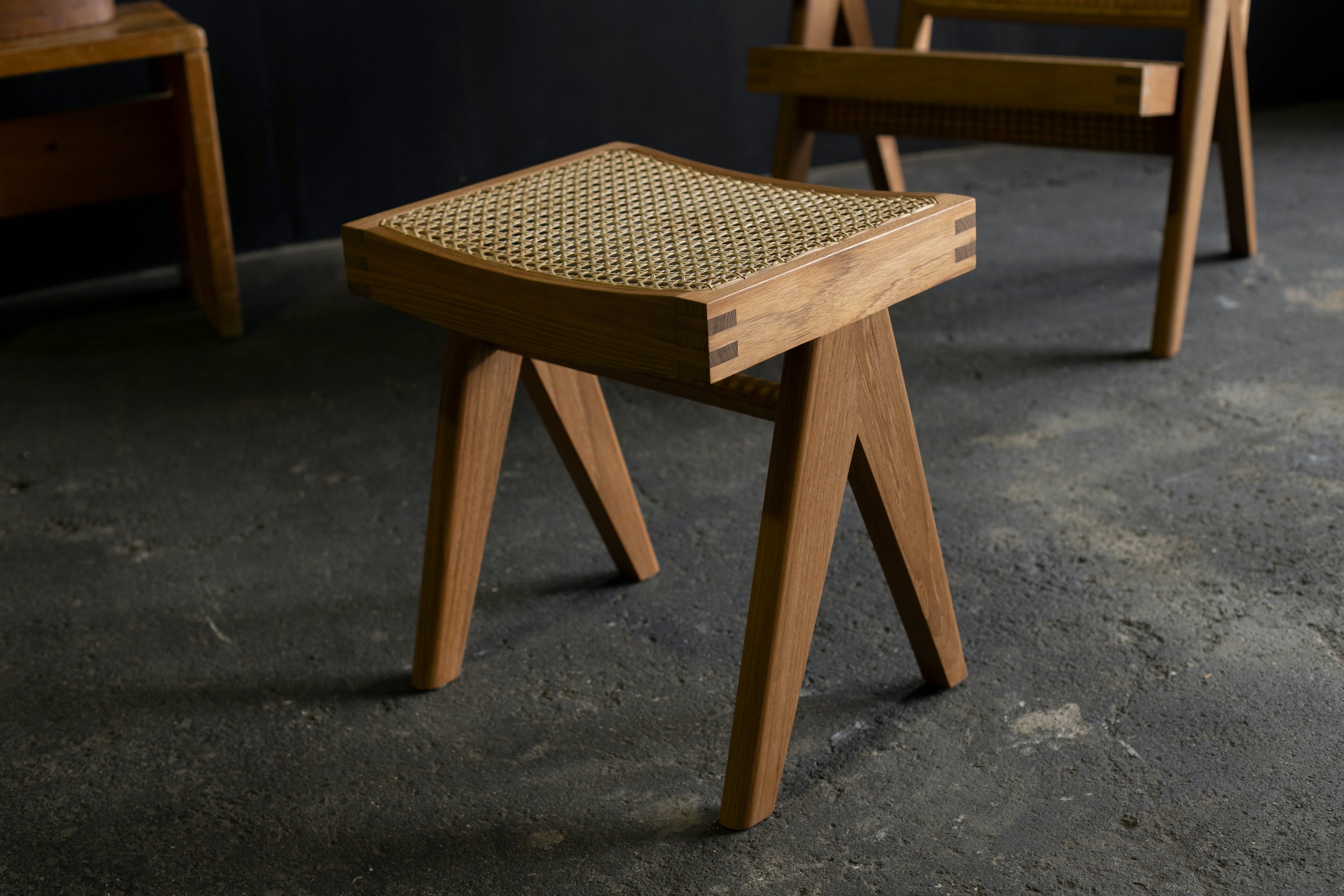本展では、2022年にインドの工房「ファントム・ハンズ」が復刻および販売を開始した「Low Cane Stool」の日本国内初となる展示受注販売を行います。このスツールは、1950年代にインド・チャンディーガルで、 ピエール・ジャンヌレとそのチームが M.L.A (パンジャブ州議会議員)の居住区のためにデザインしました。木部はチーク材で作られており、曲線を用いたフレームには籐編みの座面を備えています。座るだけでなく、ラウンジチェアの足置きとしても使用できるモデルです。