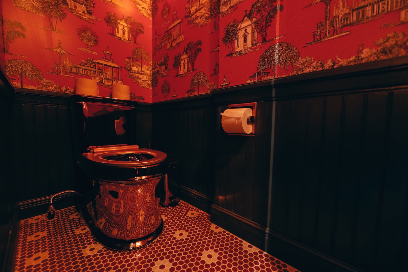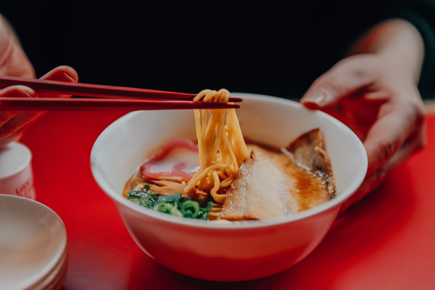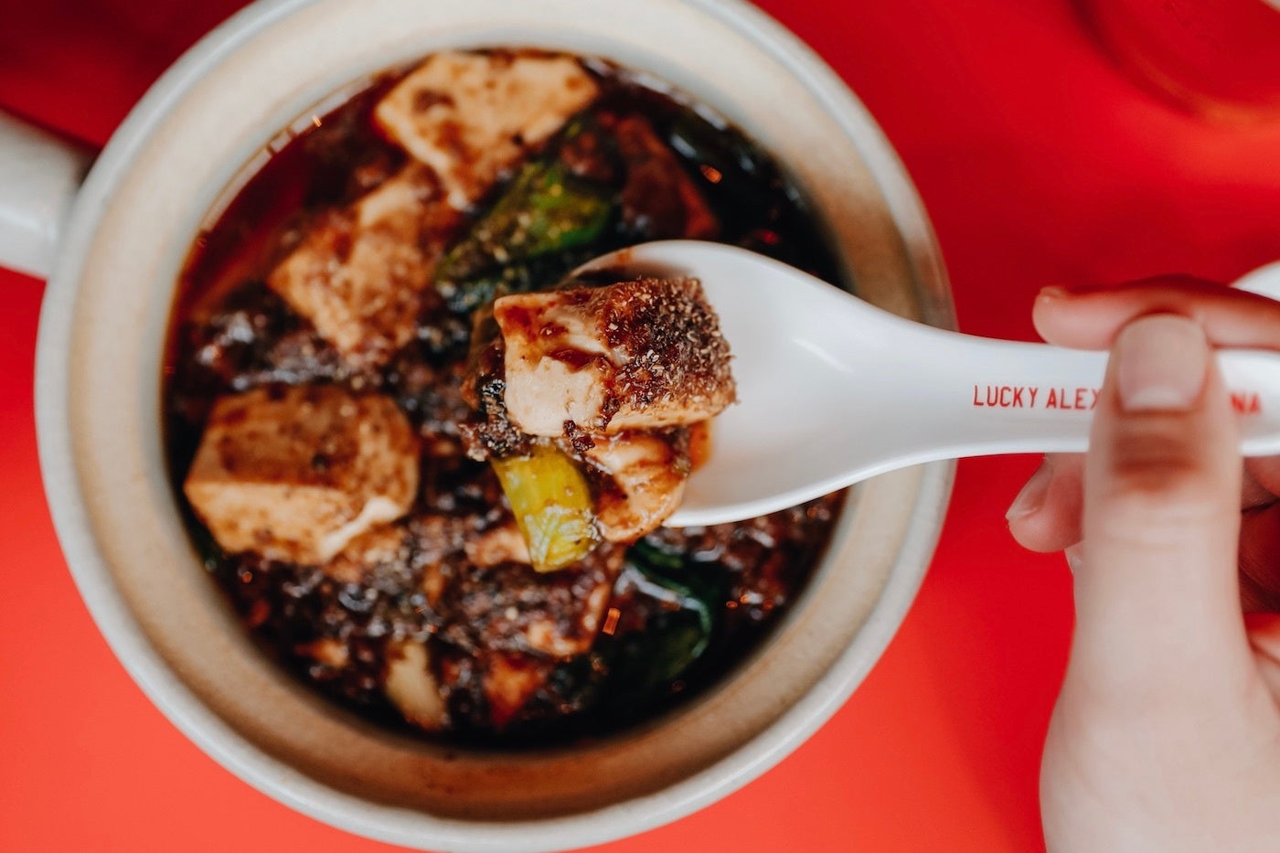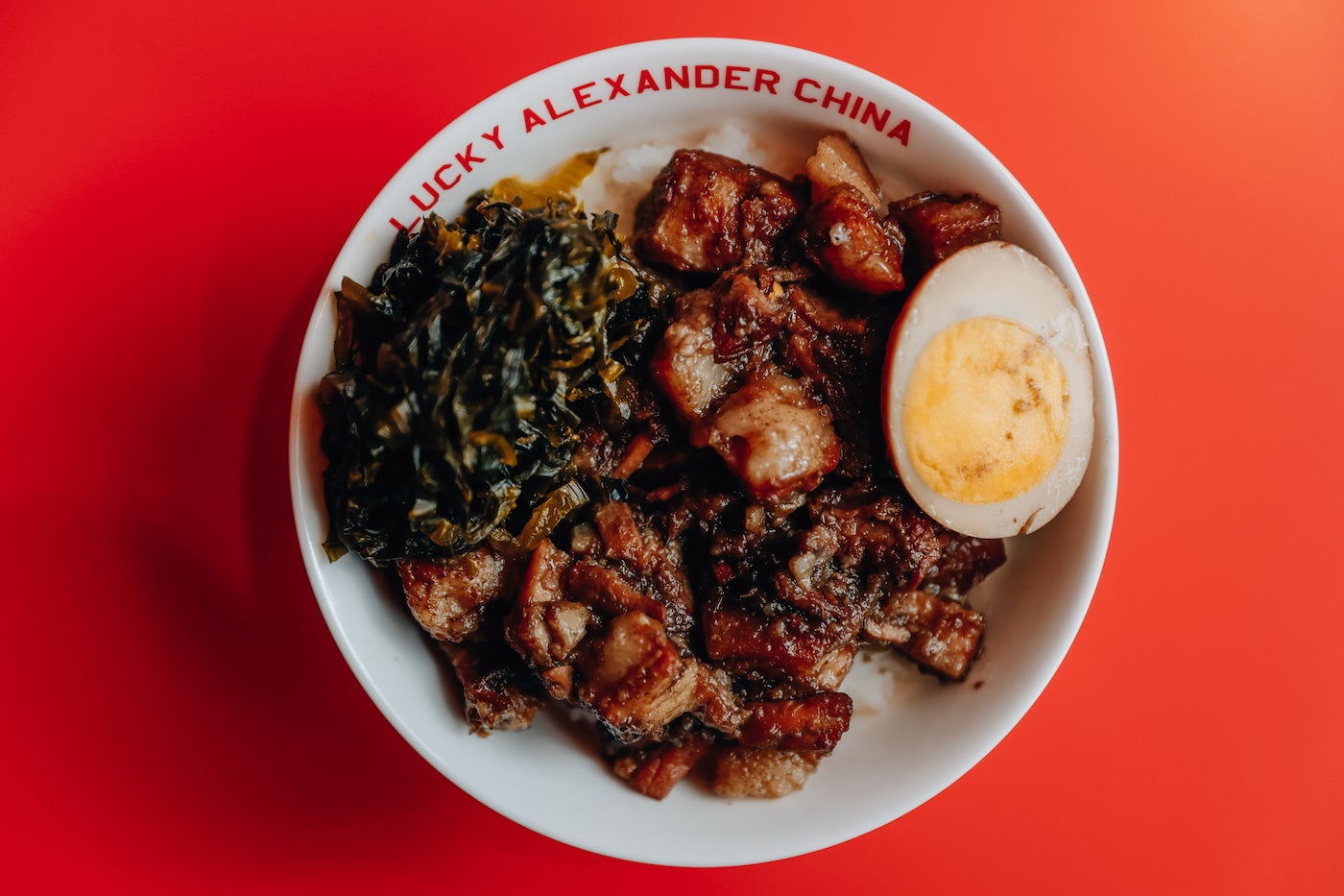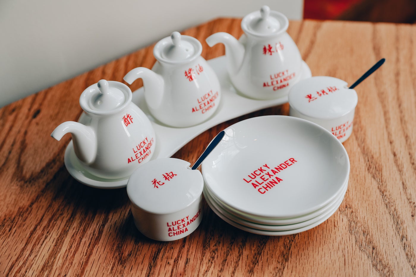 モダンでありながら、古き良き昔ながらの風情感じる店内は、数々の人気店を生み出してきたオーナー車田篤自らがデザイン。「飲食店は人を幸せにする場所」という車田が持つベースの考えから、「お店に来るたびに気分が上がって欲しい」という思いで、店内には“LUCKY(=幸運)”を散りばめました。店名をはじめ、食事を平らげたあとお皿に露出する「幸運」の文字、中国で縁起が良いとされる“8”にちなんだ8角形のテーブル、赤い幸運カラーを基調にしたトイレに鎮座する黄金色の便器まで、訪れる度に運気が上がるパワースポットのような空間です。店内で使用する、金沢の陶器ブランド「NIKKO」とのコラボレーションで作ったオリジナルデザインの食器類は店頭販売も行います。