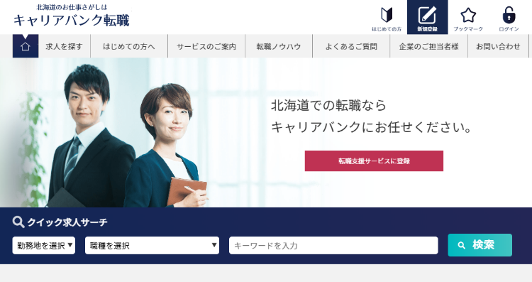 「キャリアバンク転職」はキャリアバンクが提供する人材紹介サービスです。北海道で初めて人材紹介事業を開始して36期目。営業職、バックオフィス(人事・総務・労務・経理など)、専門職など、幅広い業界・職種の採用/転職をサポートしています。