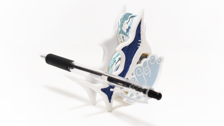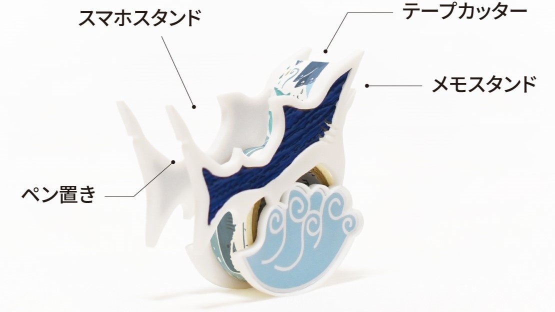 サメの型だからこそ実現した機能的な多機能文具「ジョーズくん」を予約販売する。