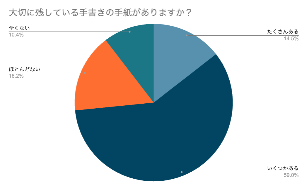 ■ 【大切に残している手書きの手紙がありますか?】では7割以上があると答えました。その中には家族(両親、子供、パートナー)からの手紙、友人、学校の先生、職場の同僚などからの手紙であると回答がありました。ラブレターや文通という回答もあり、それぞれの想いがこもった手紙を大切にしているようです。