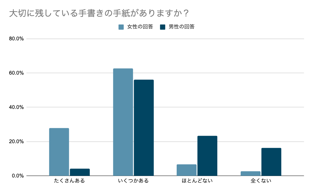 女性の方が高い割合で大切に残している手書きの手紙があると答えました。